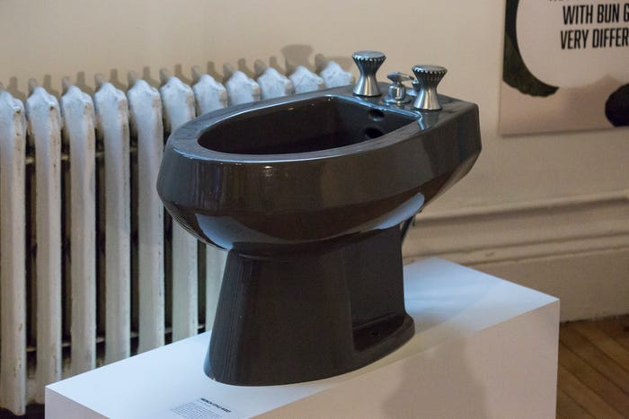 Attendees could give the bidet attachments a test run since each bathroom stall had one installed.