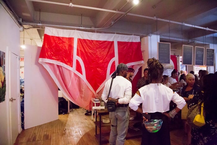 The second we stepped off the elevator, we were greeted with a giant bright pink blow-up butt.